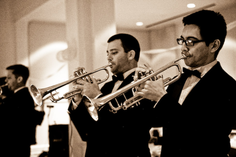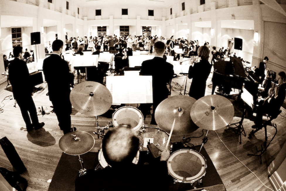 The Empire Swing Orchestra mainly performs the swing classics from the 20's to the 50's but is also comfortable adding complementary tunes to the musical routine. Most recently the bride pre-requested for a special "surprise" song to sing to her husband. We specially ordered the piece, rehearsed, and performed "Can't take my eyes off of you" while the bride serenaded her husband to the cheers of her guests.